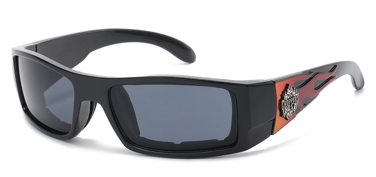 Meet the Choppers 8CP950-FLAME Where serious eye protection meets serious style points. These polycarbonate powerhouses shield your eyes with 99.9% UVA/B defense while keeping your vibe authentically you. Wholesale pricing that won't make your wallet cry, plus a branded display box that turns your inventory into a showstopper. Each box holds 12 pairs, arrives safely at your door, and gives your collection the credibility boost it deserves. Because great shades should be fun to sell and even better to wear.