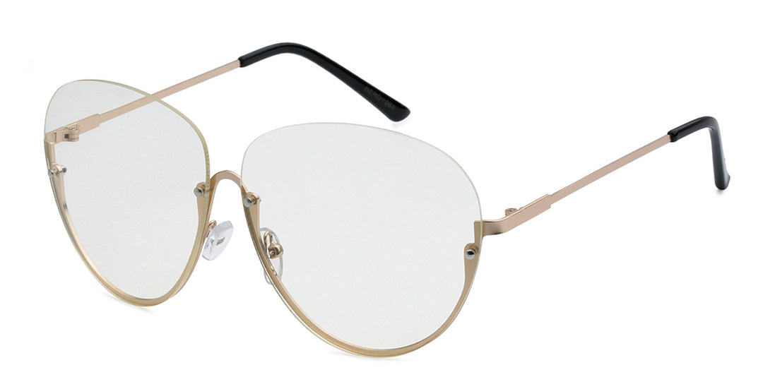 Nerd Eyewear NERD-064 Large Tri-Oval Metal Half Frame Clear Lens Fashion Glasses