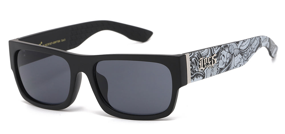 Toughness, versatility and trendy wood print meet in this popular style of Locs sunglasses. Made especially for men and women with a tough street style attitude but would want something fashionable, having these pairs in your store will bring in a large following. What makes this classic rectangular wrap shape sunglasses unique is the metal piece with a Locs logo inscription on the junction. This style comes in an all matte black color and is sold in 12 pairs in a dozen box.
