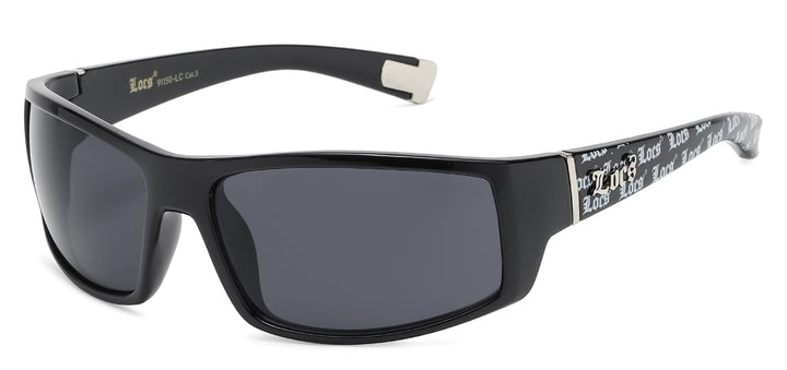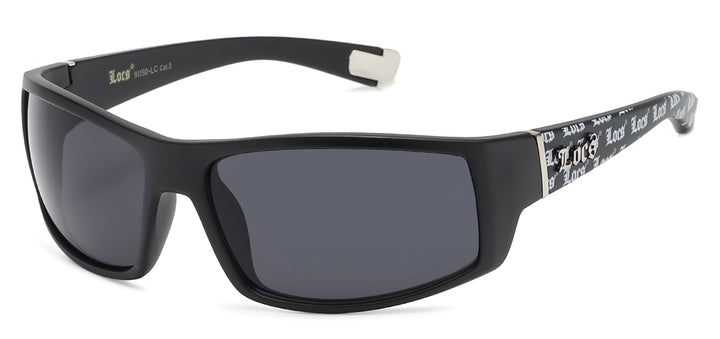 Toughness, versatility and trendy wood print meet in this popular style of Locs sunglasses. Made especially for men and women with a tough street style attitude but would want something fashionable, having these pairs in your store will bring in a large following. What makes this classic rectangular wrap shape sunglasses unique is the metal piece with a Locs logo inscription on the junction. This style comes in an all matte black color and is sold in 12 pairs in a dozen box.